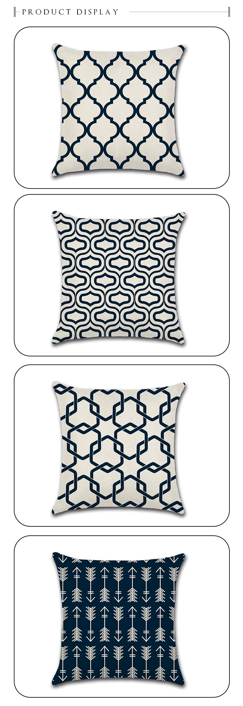 Dark Blue Geometric Circle Line Pattern Outdoor Seat Throw Case Sublimation Pillow Cushion Cover